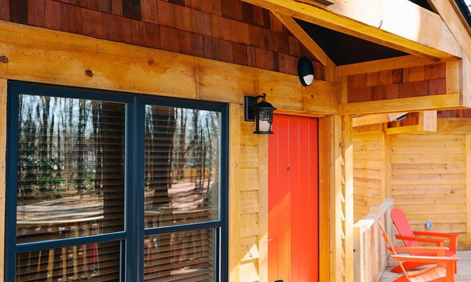 Your stay at this enchanting cabin includes modern amenities designed for comfort and relaxation. Enjoy peaceful evenings by the fire pit or unwind on your private patio in comfortable Adirondack rockers. Each cabin is equipped with a mini fridge and TV, ensuring you have everything you need for a memorable escape. With ample parking and thoughtful design, your guests will feel welcomed and at home as they share in your celebration.