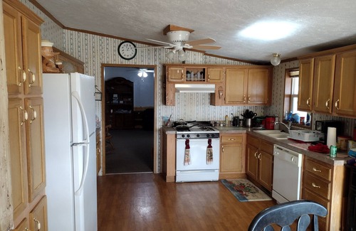This 3-bedroom cabin is perfect for your escape to Tabiona. The cozy interior features 1 king bed and 2 full beds, making it a phenomenal retreat for guests seeking a peaceful getaway. Sleeps 5adults and 3 children and I have cots and air mattresses upon request. With amenities like a washing machine, heating, and WiFi, this adorable cabin offers everything you need for a comfortable stay. We hope you'll enjoy your stay at our cabin.