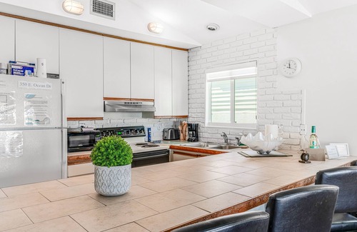 Step into this little piece of paradise and be greeted by open-concept living areas with artful decor, high ceilings, and plush seating. Snuggle up on the large sofa to stream your favorite movies or open the balcony door to welcome the warm ocean breeze. The deck is the perfect spot to unwind with a favorite book in the peaceful surroundings. A well-appointed kitchen hosts modern appliances and ample storage space for effortless meal preparation. Gather at the countertop for home-cooked meals and then break out the board games. A standout feature of this home is the well-furnished patio overlooking the bay. Enjoy your morning coffee or a sunset glass of wine as the boats float by. After a fun day of beach adventure, utilize the private washer/dryer for any sandy gear, and let the sounds of the waves serenade you to sleep.