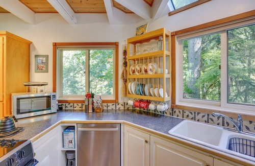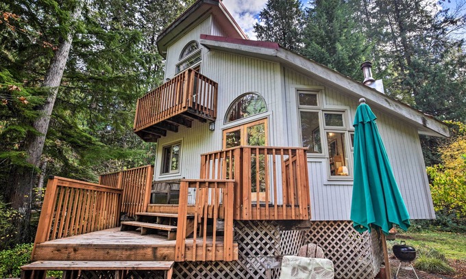 Get away from it all at this cozy, one-of-a-kind McKenzie Bridge cottage tucked away in the Cascade Mountains! This secluded riverfront vacation rental hosts a warm, enchanting setting, complete with 1 bedroom, a loft, full bathroom, multiple decks, and 4 acres of forestland. Start your day with coffee while enjoying the river sounds and mountain views. Then, take a dip in the natural spring-fed hot tub, or directly access the McKenzie River Trail. Don’t forget to go kayaking, fishing, and more!