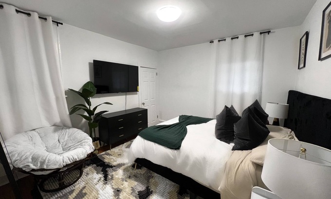 Discover a serene retreat in our cozy 1BR apartment in Philly! Nestled in a peaceful neighborhood and a 10-minute drive to Center City you'll find the perfect balance of tranquility and vibrancy. Enjoy deep sleep on a queen-size memory foam bed and prepare meals in a fully-equipped kitchen. Explore Fairmount Park, Mann Center, Dell Center, all within walking distance. Free, easy parking and proximity to local eateries add to your convenience. St. Joseph University is a short 5-minute drive away.
