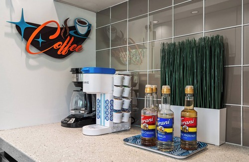 Kitchen has newer appliances, coffee lovers, don't worry there are several options, a Keurig (with pods), a traditional coffee pot, and accoutrements! There's even a natural gas barbecue available for your use as well.
