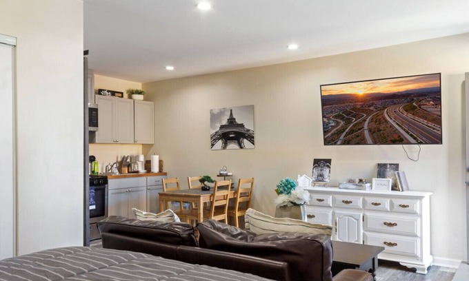 Enchanting suite nestled in a quaint Santa Clarita neighborhood! It is located 15 minutes from Six Flags Magic Mountain! The studio offers several amenities, appliances, furniture, and is in close proximity to shopping centers, parks, and amazing running trails! The hosts have designed a perfect space for single travelers, couples, or small families.