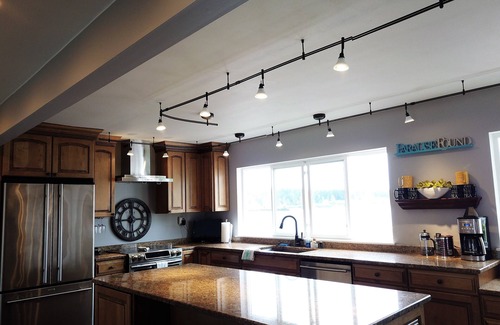 The homes features a large kitchen with many windows to once again take in the amazing water view, granite counter tops, SS appliances--perfect for large party gatherings.
