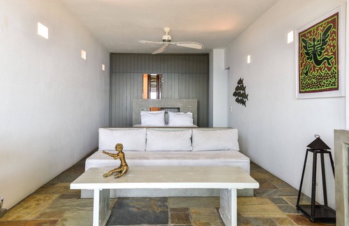 Guests benefit from direct private access to stunning flat rock formations that lead into crystal-clear waters—perfect for leisurely swims and sunbathing. The suite is fully air-conditioned, with the added benefit of a ceiling fan and the gentle northern sea breeze, locally known as the meltemi, which enhances the natural freshness of the space.