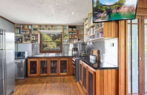 Enjoy indoor and outdoor dining, recliner lounges, stone fireplace, and outdoor areas with BBQ amidst the lush gardens and serene surroundings for relaxation and reflection. This eco-certified retreat also offers 2 bathrooms plus second toilet, and laundry with washing machine for convenience. The spacious kitchen includes dishwasher, 2 large fridges, bar area and dining area.