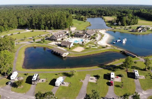 At our lakeside camping resort, guest cottages have fully-equipped kitchens and screened porches right on the lake, giving a relaxing ambience to indulge in. To fully enjoy your stay, take a dip in one of the heated swimming pools and hot tub, or jump and slide around the in-lake water park. Challenge family and friends to a game of pickleball or basketball on our onsite courts, as well as indoor games in the game room. Guests can even squeeze in a workout session in the fitness center, conveniently provided so you won’t skip a routine. For more entertainment for the kids, have them play on the outdoor playground. There is a lot more to see and do in this resort. Come and experience it yourself!