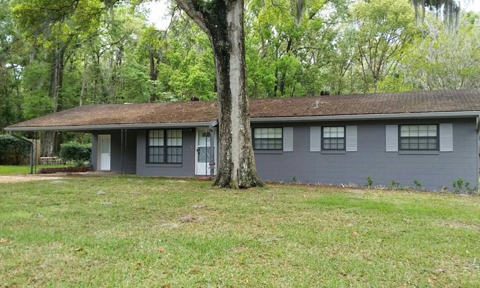 3 bedroom/2 bath home in a quiet, friendly S.E. neighborhood. It has everything you will need for a relaxing stay including a large double lot great for outside activities. House is centrally located with easy access to all the amenities such as Publix grocery stores, restaurants, theaters, banks, barbershops and salons all the while with a quiet county setting. The home is equipped with a washer and dryer, stove, refrigerator, hair dryers in each bath, central air and heat, wireless internet, cable and phone for local calls, carport and an extra drive at back of the property great for boats and RVs.