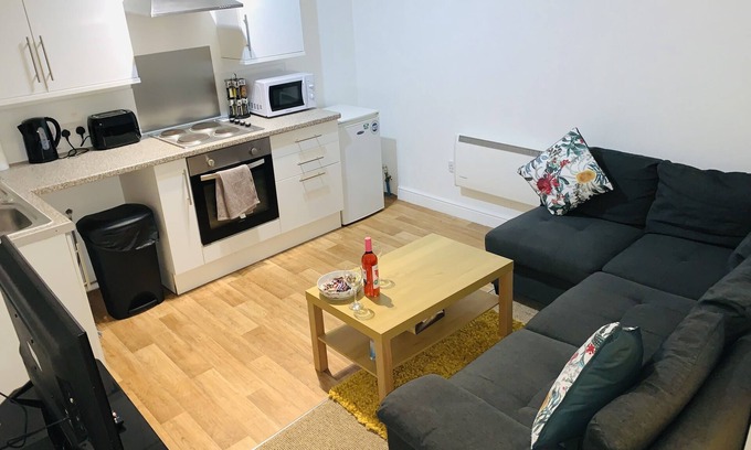 Enjoy a spacious lounge with a cozy sofa bed and a private ensuite bedroom | Apartment in Wednesbury