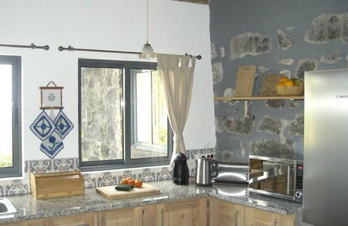Two old about 150 years old, built of volcanic stone houses were converted into a new, very light and airy overall structure. The area between the two old houses is now the living and dining area, the two old houses are the bedrooms. The interior of our Casa leaves nothing to be desired. The light-filled (new indirect lighting) living living room has a wood stove, has a internet TV, CD player (with many CD's), blue-tooth to connect with your smartphone and a free Wi-Fi. The kitchen is equipped with all modern appliances (incl. Dishwasher) and allowed to cook good to cook and bake. Here is a dining table with 6 chairs and a sofa. 2 bedrooms with new mattresses on the beds and proper duvets (unknown in the Azores) guarantee a healthy and restful sleep. One set of bedding, and two towels per person and week are included in the rental price. The bathroom with toilet and built-in bathtub is spacious and bright and airy because of three windows.