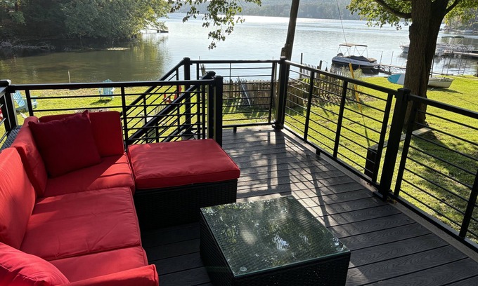 Beautiful 2 bedroom/bathroom lake side house with an open floor plan. Large deck overlooking a beautiful peaceful lake surrounded by nature. Lake house is located upstate NY on Burden Lake. You may spot a Blue Heron or a Bald Eagle enjoying the lake as well.