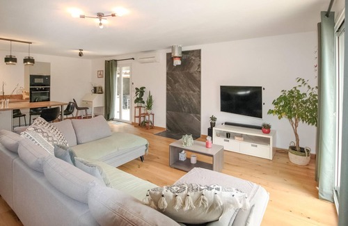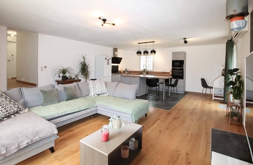 The house welcomes you in a beautiful rural location on the heights of the charming village of Balazuc, situated on its cliff overlooking the Ardèche. It offers the ideal setting for a relaxing getaway with its bright rooms with modern, tasteful furnishings. Here you can fully enjoy your time together and relax in a stylish setting. After a wonderful day, settle down on the spacious sofa, where you can sit together comfortably for a long time, watch a movie and review your experiences.