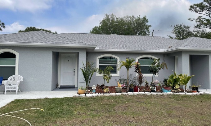Newly built duplex located in the center of Englewood. Right Across from Tringali Park, Community Center, Library, dining, entertainment, shopping, Gulf Beaches only 5 miles away! Property is fully furnished. Living room has a 65 inch smart TV to enjoy all your favorite apps, websites, movies, shows, cable, movies on demand, and so much more! Roku is also available to use if your tried of cable (180+ channels). And unlimited WIFI is provided to connect and enjoy all your devices. 2 recliners, and couch leaving plenty of comfy places to relax. Kitchen has beautiful white/marble granite counters with a walk around double sink/breakfast bar, all stainless steel appliances, and a kitchen table and chairs in the dining room that is combined with kitchen. Sliding glass doors from kitchen/dining area lead you to the screened in lanai. Lawn chairs, lounge chairs, and gas grill are provided to enjoy the beautiful weather during your stay. Washer and dryer provided in your unit. Main bedroom has queen sized bed, end tables, dressers, closet, and clothing shelve in closet. Main bathroom is attached to the master bedroom. Features walk in shower with plenty of room, sink, toilet, storage. Guest bathroom has tub/shower combo, toilet, storage, & sink. Guest bedroom also has queen sized bed, dressers, table, closet with shelves. This home is located in the perfect area to enjoy all that Englewood has to offer. Within minutes of golf courses, Wal-mart, grocery shops, shopping, entertainment, dining, parks, beach, etc. This home is a duplex with neighbors attached in other unit. Current tenants in other unit have been renting since construction was completed last year. Never any issues from them. Don't miss out on this great location! It won't last long, so what are you waiting for?! Get your vacation started! Contact me with any questions you may have!