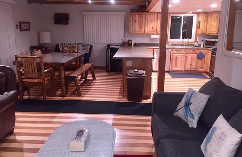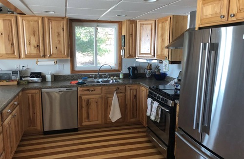 This lakefront property has a doublewide dock and a step latter with a graduated entry for when you are ready to take a swim. Depending on the weather and lake level the swimming dock is available for use from Memorial to Labor Day. Renters are welcome to provide their own moor for a boat.