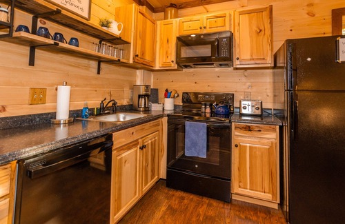Bufflehead Cabin at Tailwaters Lodge boasts outstanding views of the mountains and South Holston river. You'll enjoy sitting on a covered deck with a fire crackling in an outdoor deck fireplace. Bufflehead cabin has two bedrooms and one-bath each with a queen-size bed and Murphy twin XL bed. Complimentary items include coffee/filters for drip-coffee maker, propane grill, 2 milk-crates of seasoned firewood/kindling, free hi-speed 60mbps fiber Wifi along with expanded basic cable TV. The back porch is a wader station for anglers. Because of the grade, this cabin may not be suitable for young children or people with limited mobility. (Maximum Capacity 4).