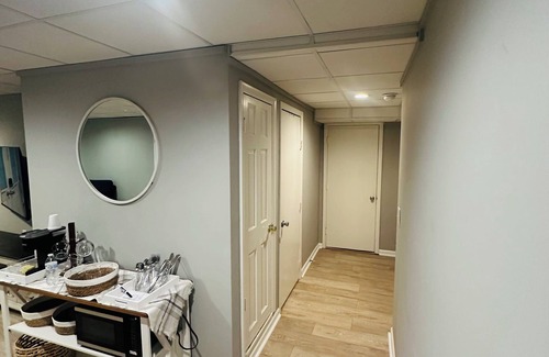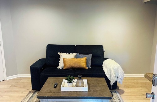 Cozy rustic basement suit in a quiet, tree-lined Charlotte neighborhood.Sleeps two with a queen bed, bathroom, living room, kitchenette and washer/ dryer in unit. Private entrance with front parking. Just 15 minutes from downtown or the airport. Stores and restaurants just a 10 minute drive. The n national White Water Center is also just a 10minute drive away. Perfect for a peaceful stay close to nature and the city.