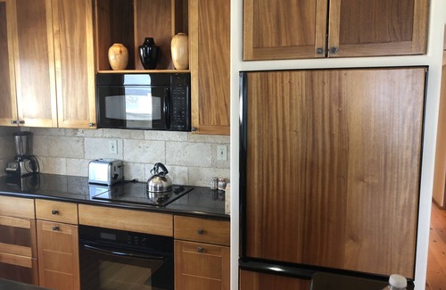 The condo's 5 Star Amenities include handmade koa & mahogany kitchen cabinets, handmade mahogany dining table, handcrafted teak king bed with Hand Pressed Sheets, FULLY EQUIPPED WITH EVERYTHING YOU MIGHT NEED
