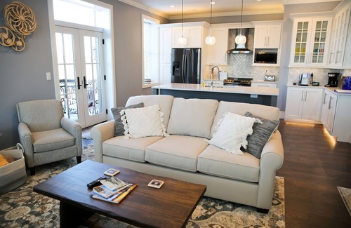 - Modern Amenities: The fully stocked kitchen includes a French press and Keurig for your morning coffee, while the living area offers a comfortable space for celebrations or relaxation with additional sleeping options available.