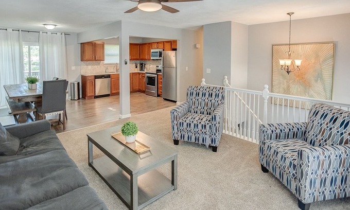 Less than 30 minutes from downtown St. Louis and even the Gateway Arch, this lovely home allows you to enjoy the city while also enjoying a bit more space. You will enjoy the wonderful amenities of a real home with the full kitchen, cozy living room, and even two full baths - you won't get that in a hotel room.