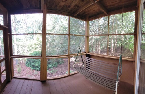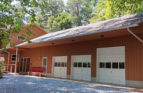 We are way out in the country. Our entrance is on pine needles with overhanging trees. The property is on 8 acres of forested waterfront. It has a private 150 foot pier and a library with over 2000 books. At night, be sure to try out the 1000m Meade telescope. Far from the city lights, you can see the Milky Way.