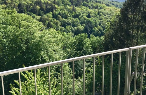 Fantastic and sunny apartment with a sunny garden with space for up to 6 people. This wonderful apartment is located in a quiet forest edge street and has sun all day. The living area is 135 sqm. There is also a large balcony and terrace so you can sunbathe, relax and enjoy barbecuing on the balcony in the evening. The view from the large balcony is impressive. You look into the beautiful valley.