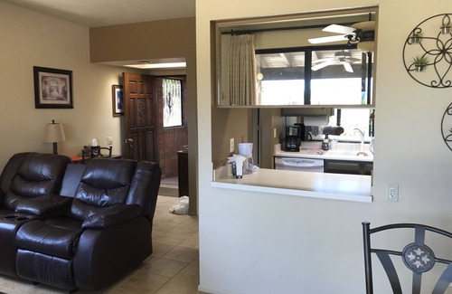 This casita is an upgraded vacation type rental with gorgeous views of the Santa Rita Mountains. Watch the sunrise in the morning as you drink your coffee on our expanded, tiled veranda. Follow the moon as it creates spectacular vistas at the end of a fun-filled day over the calm expanse of Green Valley. Find serenity in a glass of wine and a good book, welcome friends, or lose yourself in the sheer beauty of nature as the Santa Rita Mountains change colors at sunset. Covered assigned parking space in front of Casita.