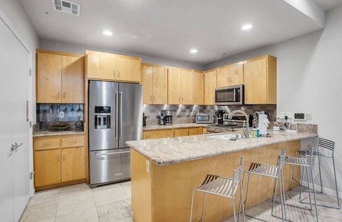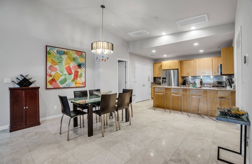 This modern vacation townhome is located just 1/2 block from Palm Canyon Drive, the main street of Palm Springs, making it mere minutes to downtown, restaurants, entertainment, casinos, golf, shopping, and the I-10 freeway. The Palm Springs Aerial Tramway is also nearby, within a 5-mile drive. A few favorite places to grab a bite are Workshop Kitchen, Cheeky’s, Farm, and Rooster and the Pig (takeout only). For a bit of outdoor activity, the hiking trails at Tahquitz Canyon will be just the ticket for soaking up some sun. If you want to take a day trip, the beauty of Joshua Tree National Park is just 35 miles away, offering hiking trails, rock climbing, and even a cholla cacti garden!