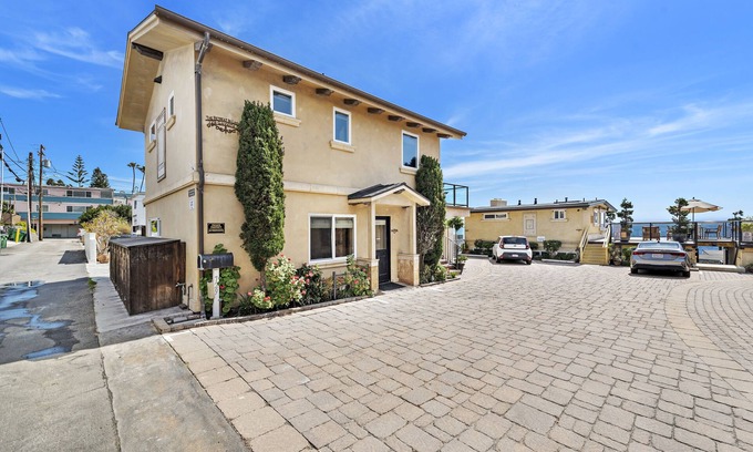 One of the best locations in Laguna Beach, steps to the beach, easy stroll to some of the best shops and restaurants in Orange County, only a few blocks from Main Beach. Once you've arrived you never need to get back in your car. This courtyard facing, luxury vacation villa is well suited for any family or group, offering 1 ½ baths with a wealth of comforting amenities. The master bedroom features a rustic Italian-style bed and bath, while the expansive bathroom features a dual headed shower with beautiful terrazzo tile. This villa does not have it's own private balcony, the balcony pictured is a common area balcony.
