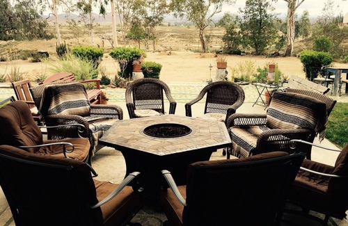 This remarkable property boasts a variety of amenities designed for comfort and convenience. The main house features three spacious bedrooms that can host up to 12 guests, along with a charming casita perfect for additional visitors. You will find an open floor plan encompassing a living room with a cozy wood-burning fireplace, a dining area with breathtaking views, and a fully-equipped kitchen ready for all your culinary needs. Step outside onto the expansive patio equipped with seating, a BBQ, and a fire pit, which is perfect for evening gatherings under the starry sky. Additionally, there are recreational activities such as horseshoes and basketball, ensuring everyone has a wonderful time during your stay.