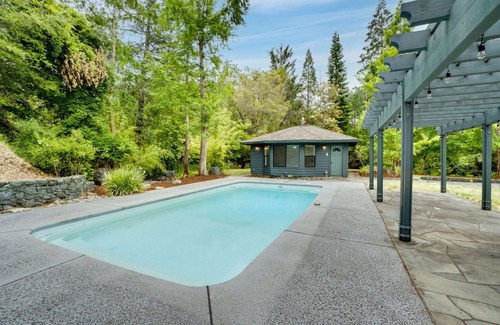 Indulge in luxury and seclusion at our 5-acre estate on the Trinity River in Willow Creek, CA. Amenities include a sparkling pool, hot tub, and a gourmet outdoor kitchen w/mini fridge, sink and grill. Gather around the outdoor kitchen for al fresco dining. This is a 1-bedroom bungalow with a private backyard creek. Located just off Highway 96, you'll enjoy all the adventures that Willow Creek has to offer