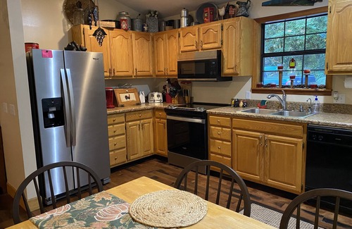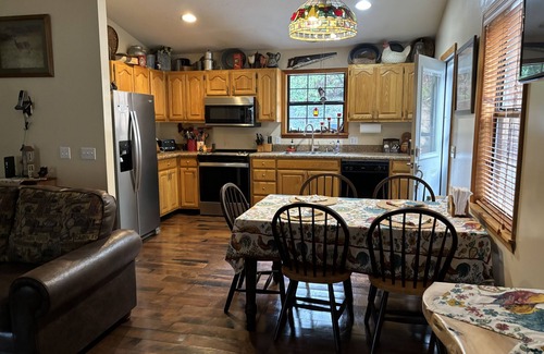 - Modern Amenities: The cabin features newly updated living room furniture and kitchen appliances that ensure your stay is both comfortable and convenient while catering to your wedding needs.
