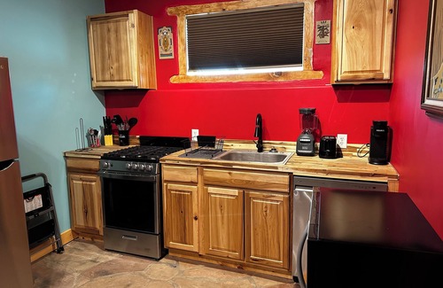 Welcome to this charming 2-bedroom attached home, nestled within a beautifully crafted adobe home—perfect for couples, small families, or friends seeking a cozy and unique getaway. With rustic elegance and modern amenities, this inviting space offers a memorable escape with a standout feature: a soaking tub built right into the master bedroom.