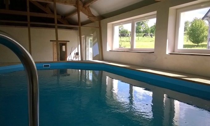 Enjoy your heated pool at La Bellazière with family and friends! | Cottage in Saint-Germain-de-Coulamer
