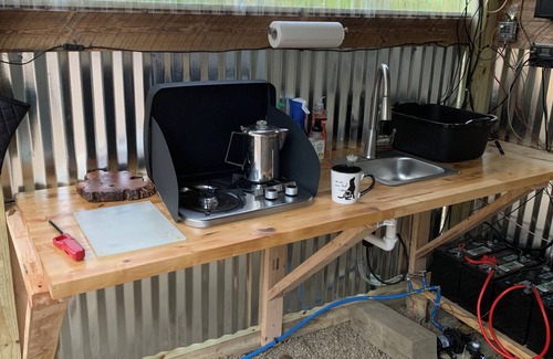 Just a short walk to our off grid cabin nestled in the woods where you can unwind from daily life. The cabin offers one double bed and one twin bed in the loft. We have a fully equipped outdoor kitchen and fire pit for evenings by the fire. The wash room features an outdoor heated shower and composting toilet. If you are looking for a peaceful getaway, please consider a stay at The Cabin at Camp Bouquet.