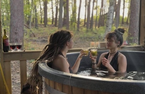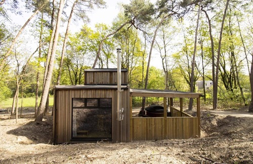 This cabin, located in the woods, has that extra bit of luxury thanks to the well-insulated windows and you can also enjoy the hot tub.