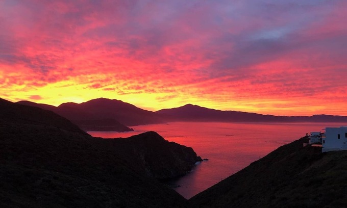 The main house has three bedrooms (1 king, 3 queens) with two bathrooms, a large living room/dining room/kitchen area, and a ping pong table on the patio. All of the bedrooms have amazing views of the ocean and the mountain ranges will often change from red to purple at dusk.