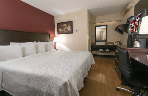 Our budget hotel offers convenient amenities for hassle-free stays for solo or business travelers and families with kids. Guests are welcomed with complimentary coffee in the lobby at any time of the day. Each smoke-free room is equipped with a flat-screen TV featuring premium channels, free WIFI access, a comfortable bed, and a private bathroom. Additional perks include free onsite parking, and you can bring your furry companion along at no extra charge!