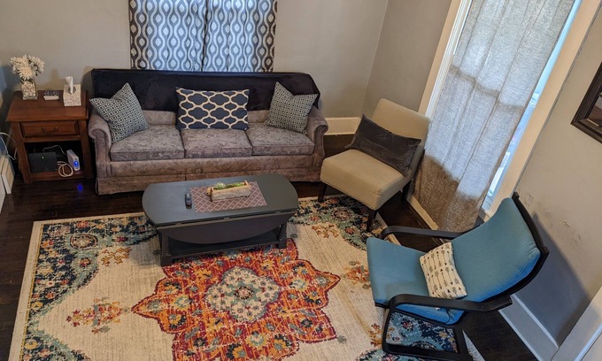 Some things to know about the property. The home is over 100 years old. The house is located about 1.5 blocks from an active railroad that has disturbed some guests in the past. Due to the age of the house, there is no central air conditioning. Window air conditioners are installed in the upstairs bedrooms, but may not cool the entire house in a manner you are used to.