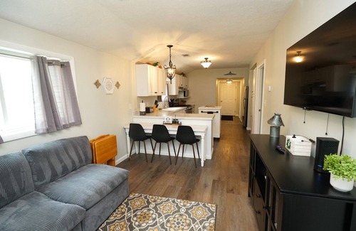 Thoughtfully designed for comfort and functionality, our cozy space exudes a welcoming atmosphere. Enjoy the convenience of a fully equipped kitchen, comfortable living area, and tranquil bedrooms for restful nights. The rear entrance has no steps, ensuring seamless accessibility for guests of all ages and mobility levels.