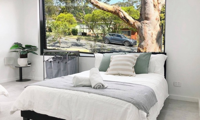This stylish place to stay is perfect for business trips or vacations. Welcome to our spacious and stylish 2-bedroom, 1 Q size beds, 2 D size beds, 1-bathroom house, located in the downstairs front part, separate, nestled in the heart of vibrant Peakhurst. Embracing a delightful modern aesthetic.