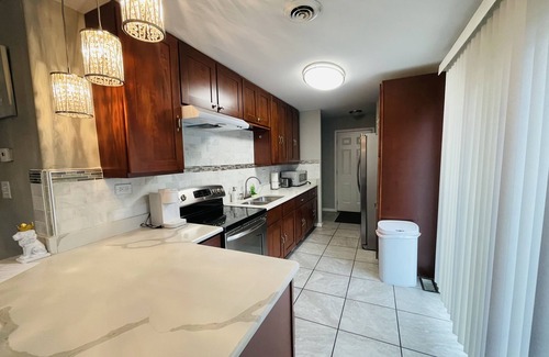 3bedroom home, Lovely kitchen, dining area, washer and dryer. Everything you need for a comfortable stay. 5 minutes away from Hazel crest- Millenium metra station . Close to homewood best bars and restaurants. Also only 45 minutes away from downtown Chicago.you can park up to 3 cars on private driveway.