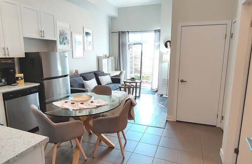 During your stay, you will enjoy: Full access to a stylish 1-bedroom, 1-bathroom apartment. Self-check-in and checkout for your convenience. Apartment located on the ground floor with easy access from both outside and inside the building. Complimentary, high-speed internet perfect for work or streaming your favorite shows on Netflix.