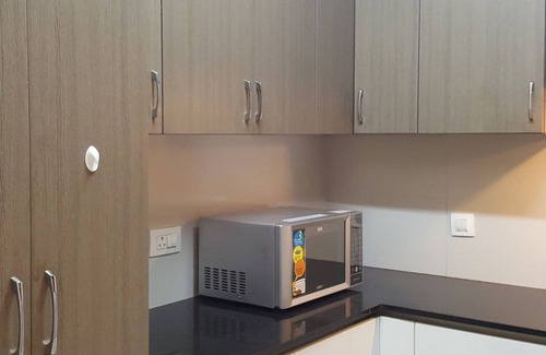 This is a fully furnished apartment with smart TV, fridge, washer, UV water purifier, hot water geysers, hob chimney cooking utensils / vessels and cutlery to prepare your choice of meals. All items provided are strictly meant for use on premises any items missing or damaged will be charged directly to the credit card.