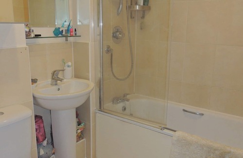 The bathroom is bright and clean with power shower set within the bath. All towels provided too.