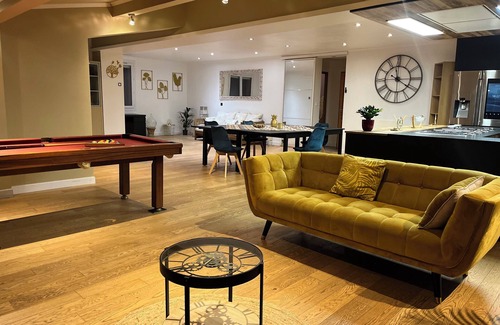 After you return to this 2153-sq-ft vacation home, you can unwind by the heated pool or sip a drink in the hot tub; you may also like the garden and deck or patio. For a change of scenery, come inside and try your hand at table tennis and billiards, or enjoy the free WiFi, TV, and video games.