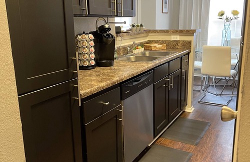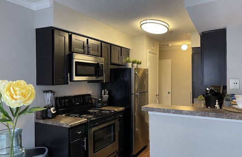We are excited for you to enjoy this luxury 1BED/1BATH CONDO that is located in a gated community within 2 minutes from I-85. Complimentary WiFi, coffee, and tea are all provided along with an in-unit washer and dryer for your convenience.