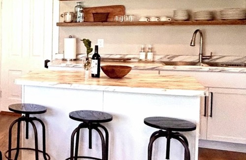 If you enjoy cooking, the kitchen is fully stocked with appliances and cookware for you. Or, just wake up to a fresh cup of Nespresso, and enjoy breakfast/lunch next door any day of the week at the local 5-star rated cafe—Bonnie Rae's. In the summer, sip and take in the hilltop views from outside mini bar top and bistro table. For a convenient dinner, drive 10 minutes through the hillsides and you will find Eagle View Bar & Grill in Minneiska, or local restaurants in Winona.