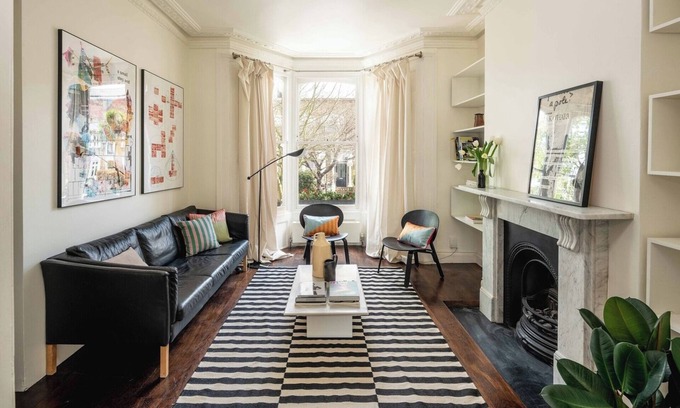 Stay in this architect-designed, newly refurbished family home, offering a bright and airy living space. With 3 bedrooms (1 king, 1 double, 2 singles), 1 bathroom, and 2 WCs, it comfortably accommodates up to 6 guests (ideal for families). The home features ample storage, a functional layout, and a secure entry system. Located in a fantastic area with excellent transport links, making it perfect for exploring London.
