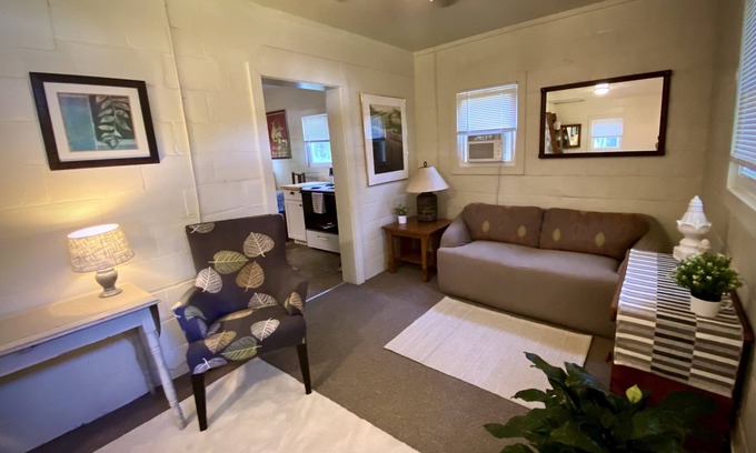 Safe and simple, stay in this private, centrally-located screen free cottage, it's all yours. Resting on 14 acres right in town with walking trails, an award winning working furniture shop on site, it is less than a half mile from the D Day Memorial. The bedroom has a full size bed and the main living space has a twin bed and additional full size pull out couch. The kitchen is equipped to cook all of your meals. Blue Ridge Parkway, Smith Mountain Lake, Lynchburg, Roanoke are all close by. Please join us.