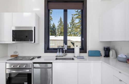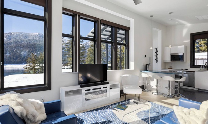 Escape to our newly built, charming waterfront guesthouse nestled on Cle Elum Lake. Modern retreat boasts ceiling to floor windows and breathtaking lake/mountain views. Our Cascades Mountain all-season getaway features sunny summer weather and a wintery wonderland. This vacation rental is separate from the owner’s personal vacation home on the property. While the owner’s home is seldom occupied, both residences are designed for complete privacy with separate entrances, ensuring a peaceful stay for you. Kitchen, washer/dryer, electric fireplace, walk-in shower, and outdoor patio overlooking the lake. Easy access to Snoqualmie Pass, as well as shops, restaurants and a movie theatre in the quaint nearby town of Roslyn. Our unit is perfect for a romantic getaway, or for use as a hiking destination for 2-3 hikers looking for a cozy place to rest between adventures. The space is also ideal for a small family (1-2 children) who want to spend quality time together and enjoy the great outdoors. This is a small rental with cozy bedrooms and does not lend itself to a party atmosphere. The space is 635 square feet, featuring two bedrooms and one bathroom with a walk-in shower. The main bedroom offers a comfortable queen bed, while the second bedroom has a bunk bed with a full bed on the bottom and a twin bed on top; this room is perfect for your children! Please note that this space requires access via a staircase only. There is a small patio with two adirondack chairs. The unit boasts a sweeping view of the lake and beautiful mountains, creating a serene and picturesque setting. The living room is equipped with a Fire TV (smart TV), an electric fireplace for a warm ambiance, a small couch, and a lounge chair. It also includes a selection of board games and children’s books. The bathroom features a walk-in shower with glass panels. The kitchen is both cute and functional, equipped with an electric stove, oven, sink, microwave, fridge/freezer, and an island with four barstool chairs for dining. Amenities include a Keurig coffee machine with a few pods, a tea kettle, toaster, blender, cooking pots and pans, and a variety of kitchen essentials such as plates, cups, cutlery, cutting boards, a knife set, pizza cutter, measuring spoons, and more. Assorted teas, salt, pepper, spices, olive oil, foil, storage bags, and parchment paper are also provided. Additionally, the hideaway offers a small washing machine and dryer for your convenience. For families with young children, the amenities also include a collapsible highchair, baby gate, diaper rash cream, shampoo, conditioner, lotion, hairdryer, children's books, stuffed animals, and a few toys (Lincoln Logs). The area is known for its wonderful hiking trails, snowshoeing, snowmobiling, fishing, golf, spa, and bird watching. Hex Mountain, located right across the street, offers a steep but rewarding hike with 360-degree views from the peak. On a clear day, the Hex Mountain hike allows you views of Mount Rainier, the Teanaways, the Stuart range, and many other surrounding peaks. The neighborhood is within a quiet, gated community comprised of just a handful of homes, making it perfect for a quiet getaway. This small community is home to beautiful wildlife that is often seen roaming around the area, including turkeys, deer, elk, bald eagles, raccoons, coyotes, and occasionally bears and mountain lions. We offer a complimentary can of bear spray for use while you stay at our place. Please note we do not have a BBQ out of an abundance of caution for fires. The forest gets very dry and experiences high winds.